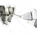 … to feed your eyes whilst I figure out how to make the next part… These sketches document the evolution of the curvy waffle. In these models a series of folded, hard reflective panels and resonating chamber create a small part of the larger building proposal. The panels move to create a range of surface geometries ranging to allow the structure to act as a sound mirror or intimate listening space. Tomorrow I’m testing this new iteration in a number of ways to compare its success in creating an adaptable acoustic space against the waffle.